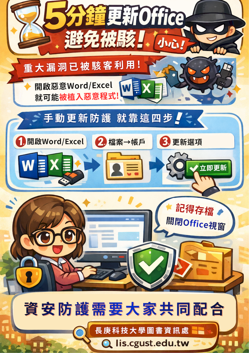 資安防護需要大家共同配合,圖書資訊處關心您~~!!
