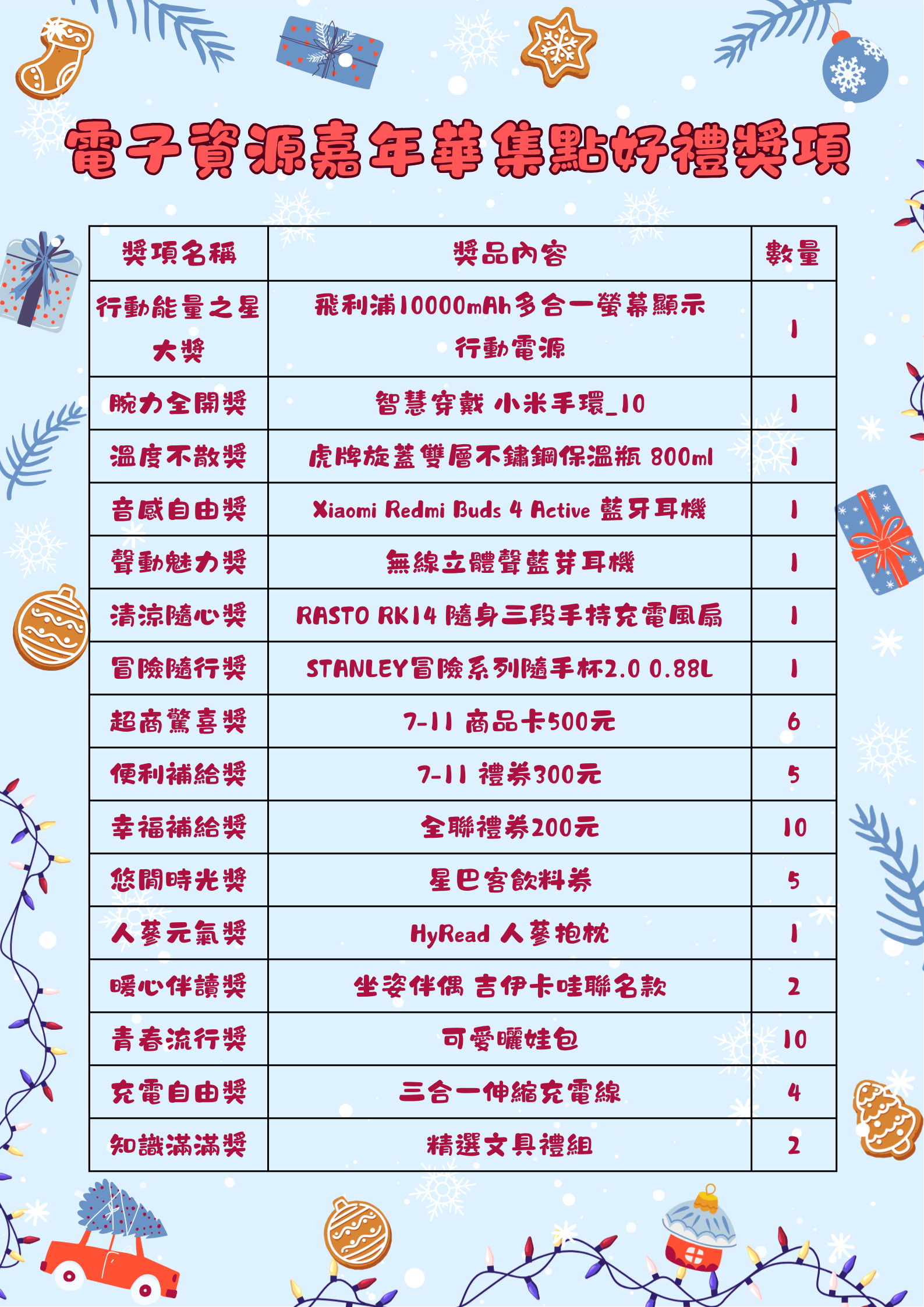 活動好禮:小米運動手環、行動電源、藍芽耳機、Stanley保溫瓶、超商禮券100-500元等,多項大獎等你帶回家!(查看完整獎項清單)